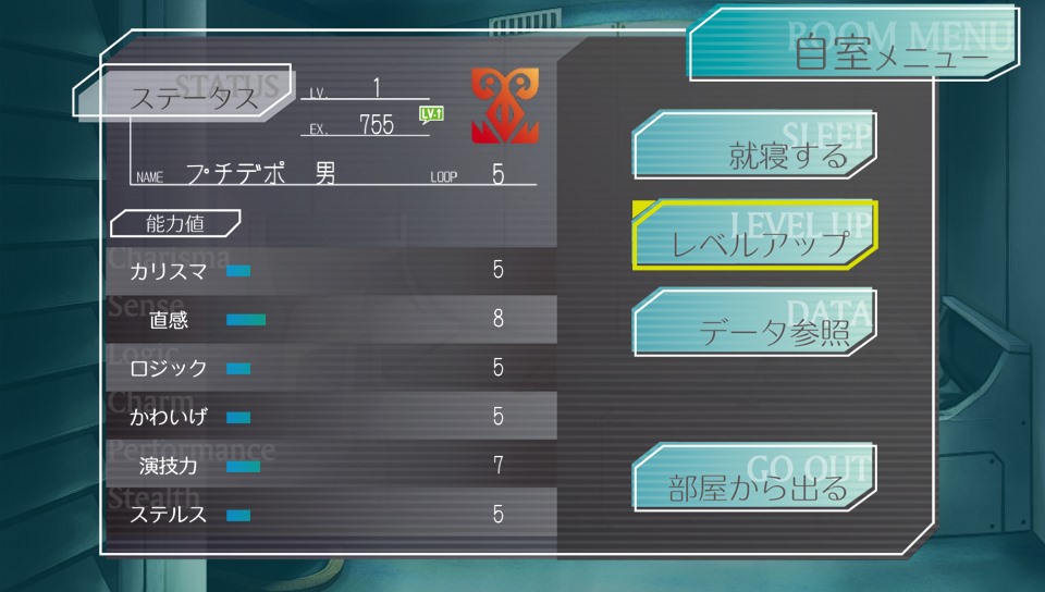 なお、1つのゲームが終了すると経験値が手に入るので、これを使って自分のステータスを上げることができます。