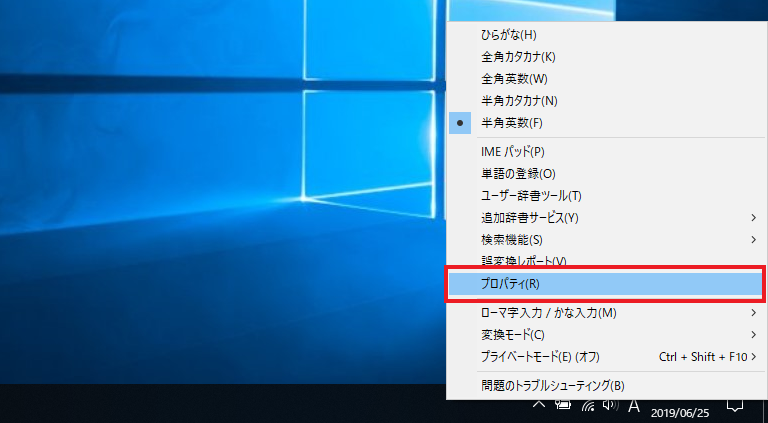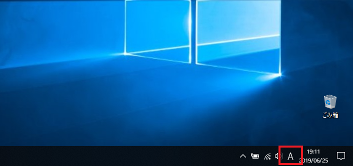 Windows10では、「全角/半角」キーを押すたびに「あ」「A」と画面に大きく表示されます。